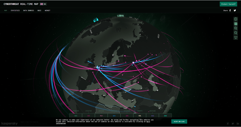 Example: Kapersky Cyber threat real-time map