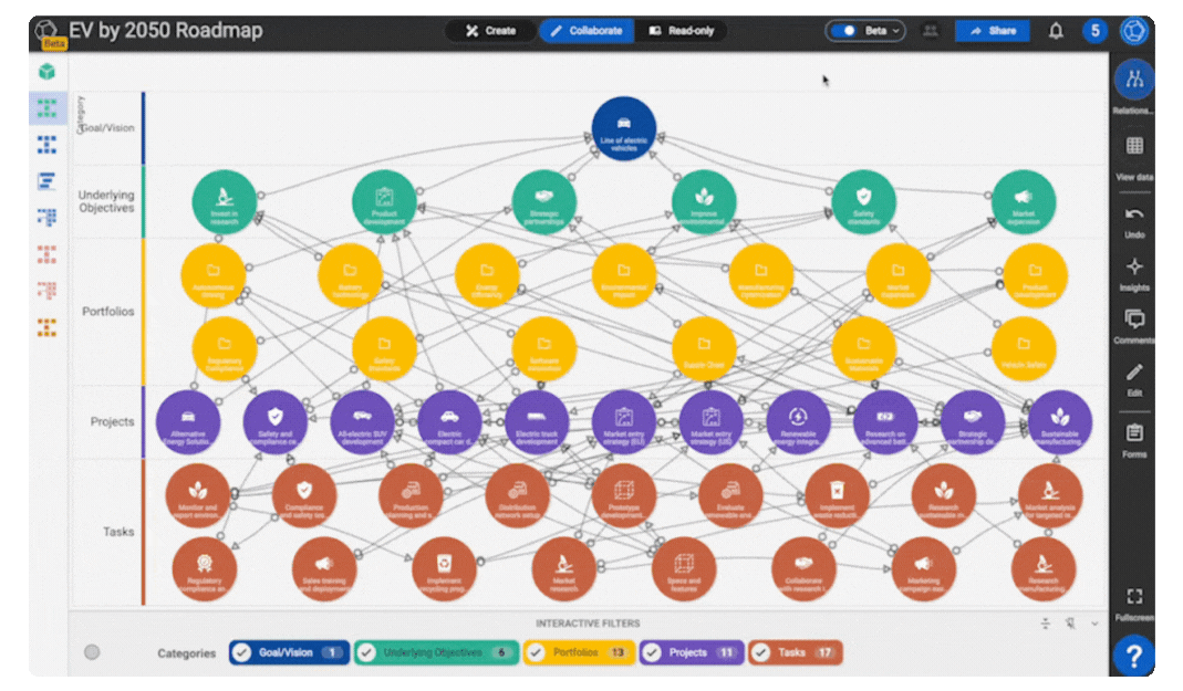 SharpCloud provides a framework that guides you through these decisions, helping you create a cohesive strategy that connects high-level goals with day-to-day execution.