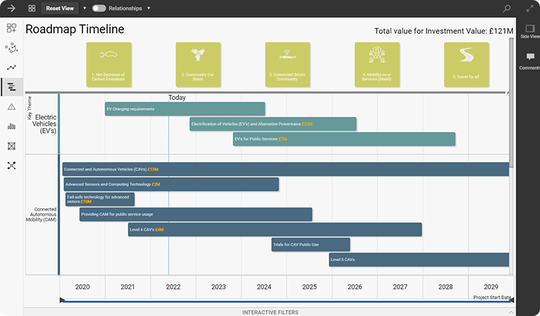 Using data-driven visual software, leadership and teams can achieve benefits around transparency, collaboration and co-creation. Strategic roadmaps can be a shared focal point of all discussions and stakeholder presentations and actions and decisions can be easily tracked and monitored.