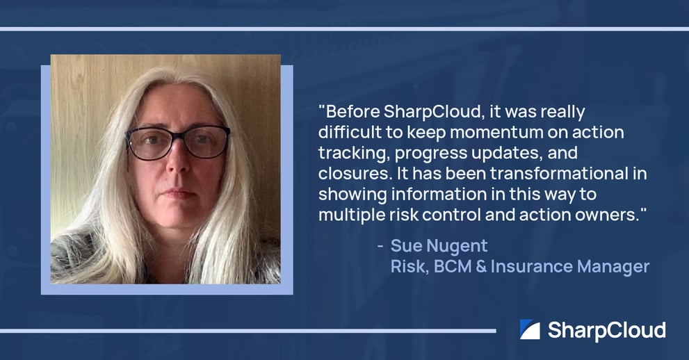 Sue Nugent, Risk, BCM & Insurance Manager, explains they had a lack of visibility of risks and needed to visualize multiple layers of risk registers; in excess of 30 separate workbooks and worksheets that didn't talk to each other.