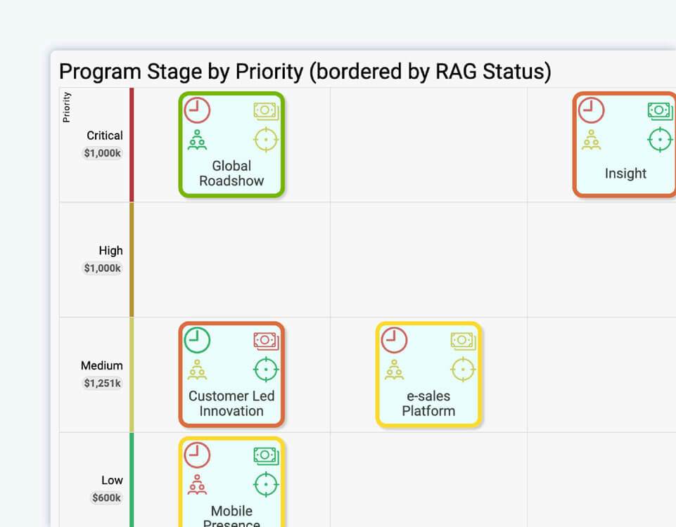 We constantly see people, who are experts in their respective space, manage an unwieldy and difficult spreadsheet. They spend valuable time exporting and reformatting data into PowerPoint - only for key information to be lost or overlooked in the process. Roadmapping software allows team members to easily engage with information via an intuitive interface and understand what the key points are. They can see how data is connected, helping provide context before making a key decision.